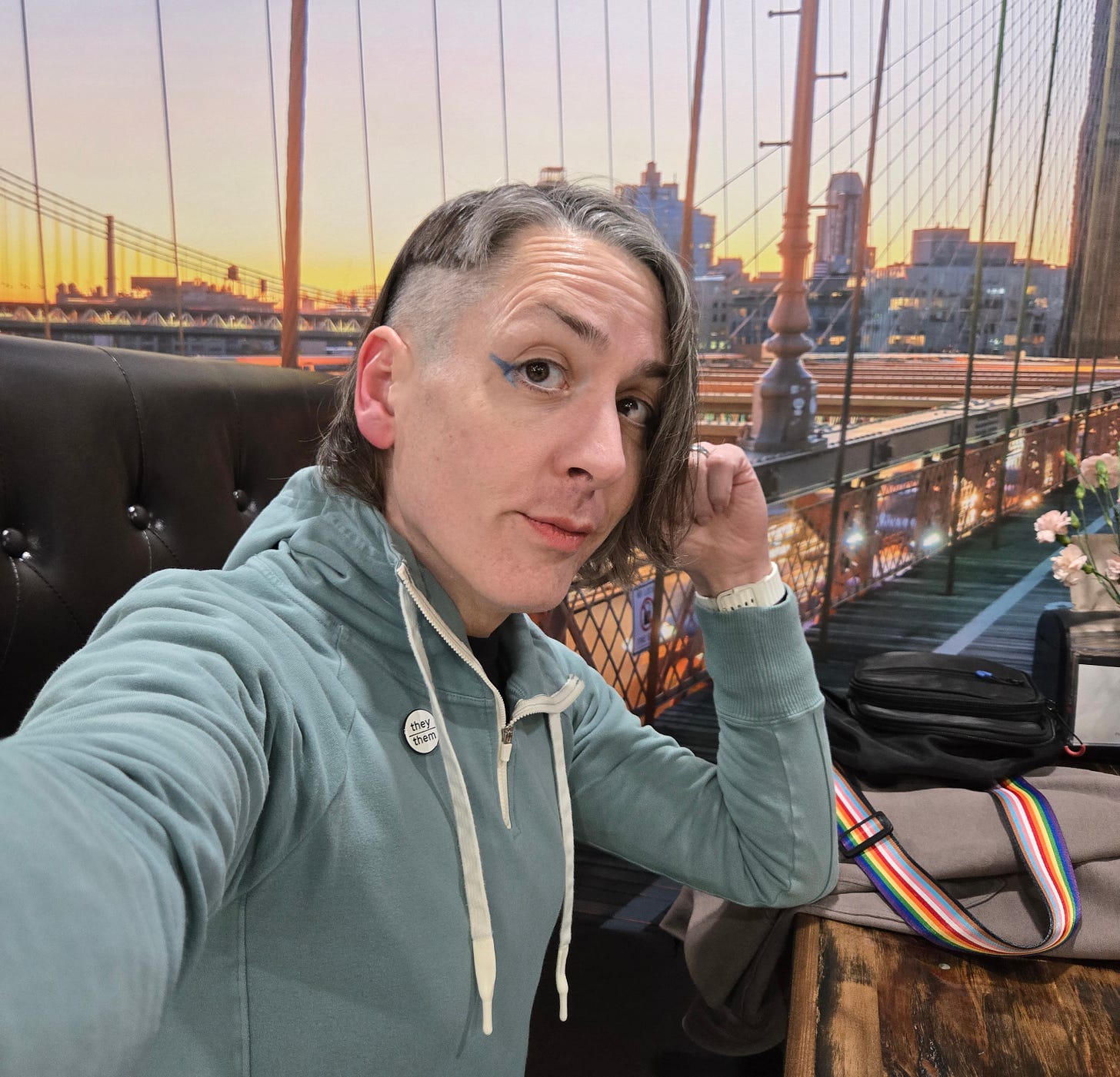 The inspiration for my current hair is none other than Spider-Gwen herself, as seen in the Spider-Verse movies. Her asymmetrical hair do gives off punky gender non-conforming vibes, and I love the idea that from one side it leans feminine and on the other it leans masculine.